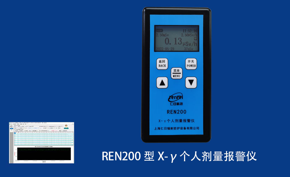 REN200A 輻射個人檢測儀REN200A型X、γ輻射個人劑量當量HP(10)監測儀(簡稱:個人劑量報警儀)內置高靈敏度蓋格計數管為探測器,主要用來監測各種放射性工作場所中個人的X、γ以及硬β射線的輻射,具有響應快,測量范圍寬的特點。能顯示工作場所的劑量當量率和累積劑量,更換電池時,日期及累積數據能永久保存。可選配RenRiPersonal個人劑量管理軟件,該軟件可存儲多個人的歷史數據,能記錄日累積、月累積、年累積、輻照時長、計算平均劑量率、扣除或不扣除本底輻射,且以文字和圖譜的方式展現數據。廣泛應用于核電站、加速器、鋼鐵、化工、同位素應用、工業X、γ無損探傷、放射醫療、鈷源治療、γ輻照、放射性實驗室、核設施周圍環境監測等領域中的工作人員進行個